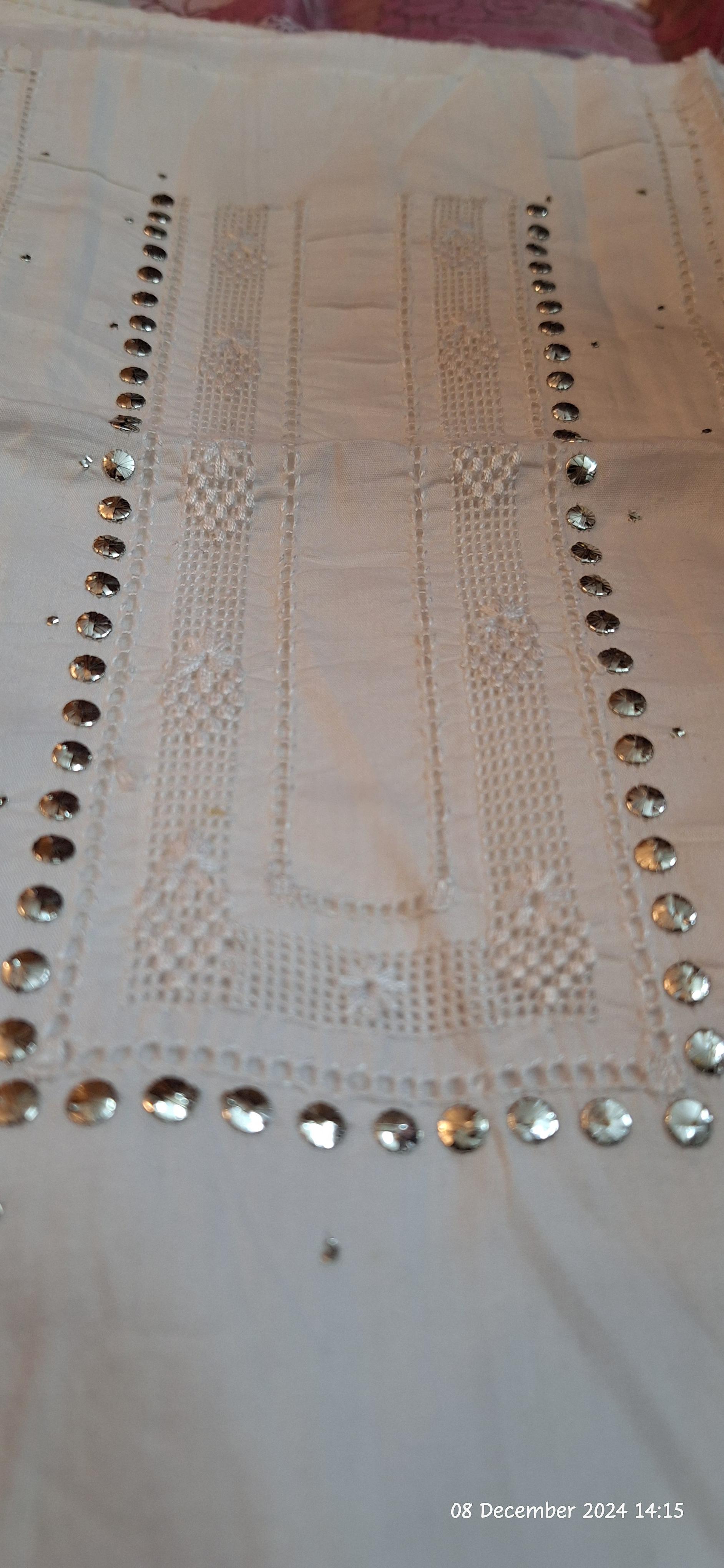Snowwhite Mulmul fabric embroided with self color